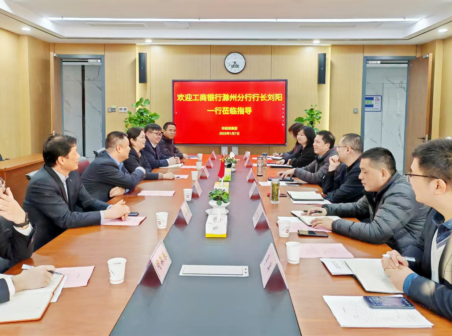 1月8日下午,工行滁州分行黨委書記、行長劉陽一行蒞臨集團(tuán)交流座談,集團(tuán)黨委書記、董事長、總經(jīng)理高文進(jìn)主持會(huì)議,部分班子成員、相關(guān)部室負(fù)責(zé)人參加座談。