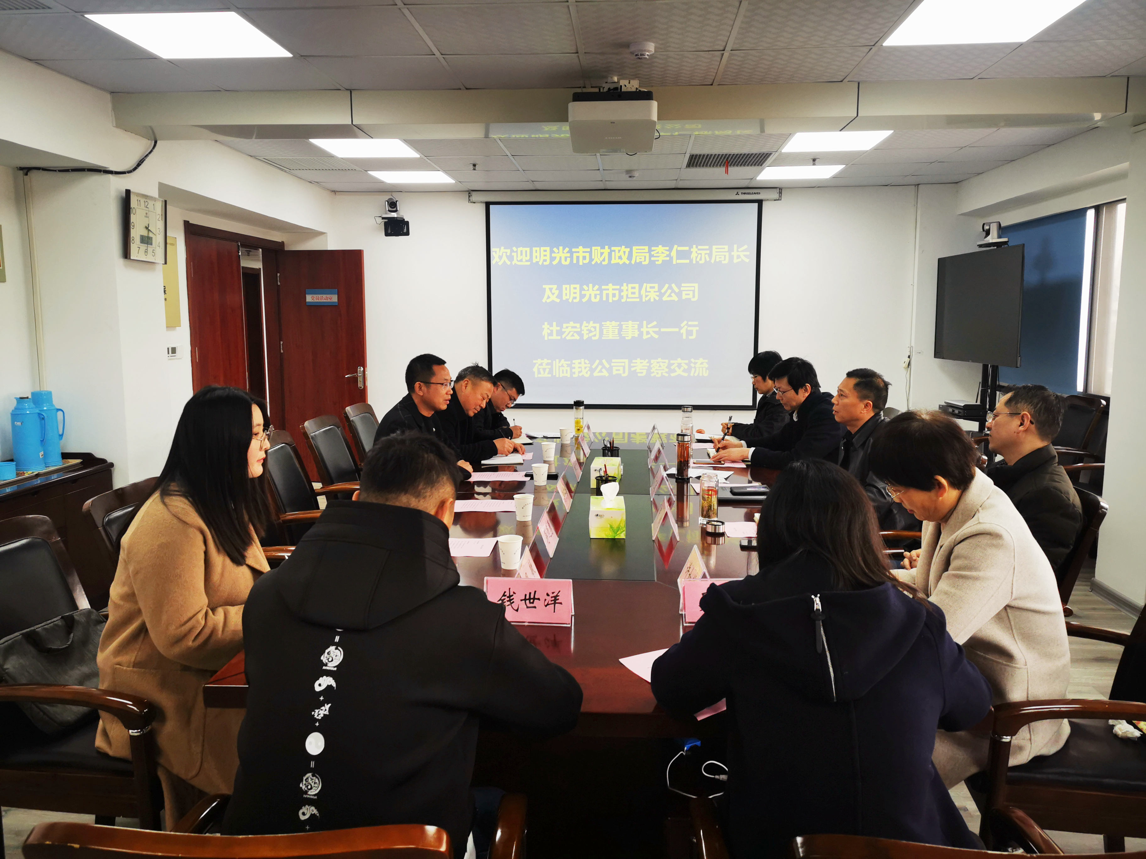 3月23日下午,明光擔保公司董事長杜宏鈞一行赴滁州擔保集團交流座談。市擔保集團黨委書記、董事長、總經(jīng)理高文進,市普惠融資擔保公司高管熱情接待。