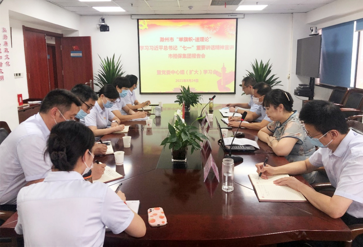 會議要求,一是深刻認(rèn)識總書記“七一”重要講話的重大歷史意義。學(xué)習(xí)貫徹總書記“七一”重要講話精神,是當(dāng)前和今后一個時期的首要政治任務(wù),集團全體黨員干部要切實增強學(xué)習(xí)貫徹講話精神的政治自覺、思想自覺和行動自覺。二是全面領(lǐng)會總書記“七一”重要講話的豐富內(nèi)涵和精神實質(zhì)。深入了解全面建成小康社會的偉大成就和歷史意義,深入領(lǐng)會偉大建黨精神的深刻內(nèi)涵和時代價值,深入貫徹以史為鑒、開創(chuàng)未來“九個必須”的寶貴經(jīng)驗和根本要求。三是要堅持以習(xí)近平總書記“七一”重要講話精神為指導(dǎo),一體學(xué)習(xí)領(lǐng)會、整體貫徹落實習(xí)近平總書記考察安徽重要講話精神和對國資國企一系列重要論述,全力服務(wù)實體經(jīng)濟,全力服務(wù)“雙招雙引”,全力服務(wù)“亭滿意”營商環(huán)境,奮力開創(chuàng)滁州擔(dān)保發(fā)展新局面。